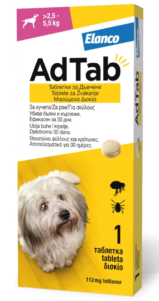 ELANCO AdTab 112 mg tablete za žvakanje za pse (> 2,5–5,5 kg)
