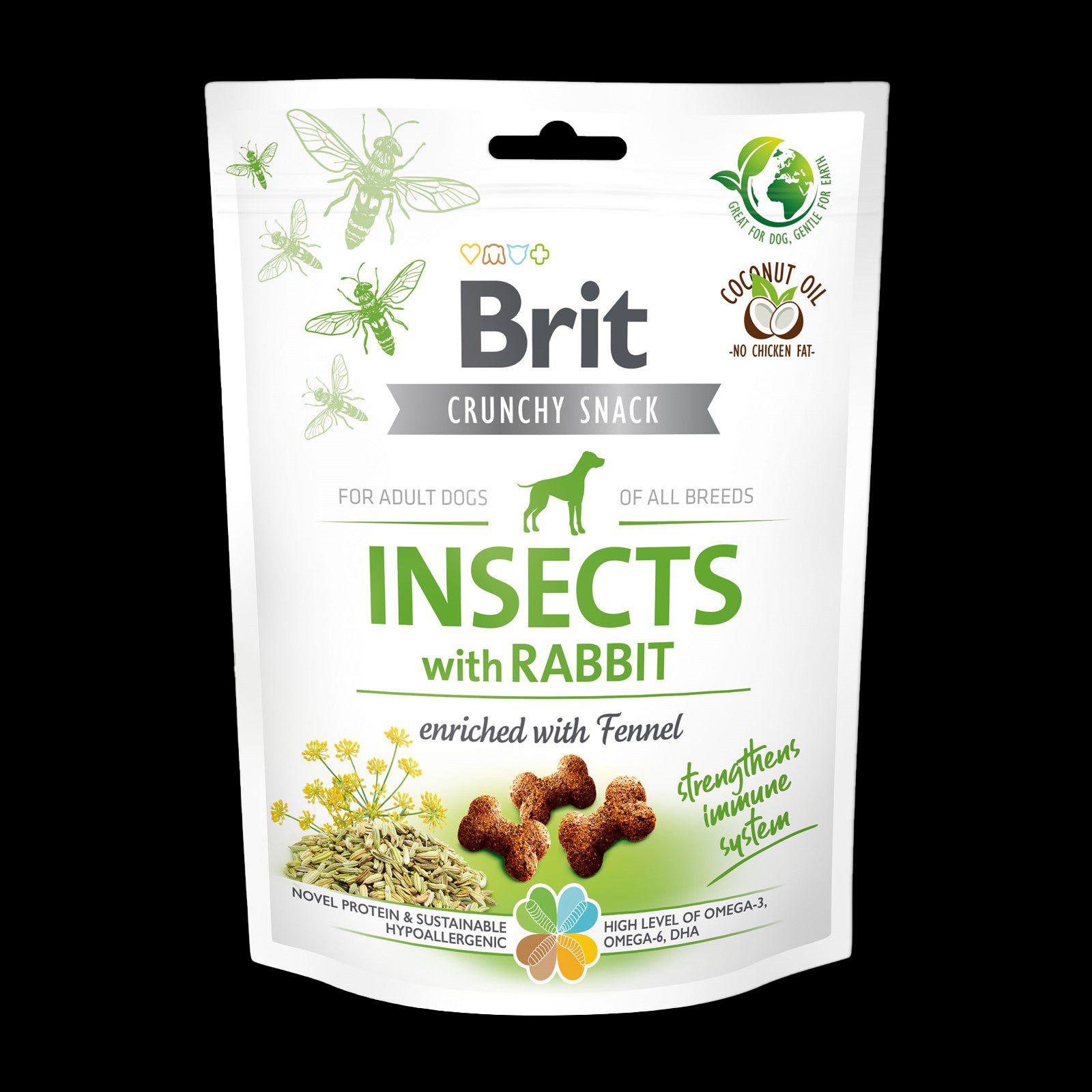 BRIT Crunchy poslastica, insekti s kunićevinom, obogaćeno komoračem, 200g