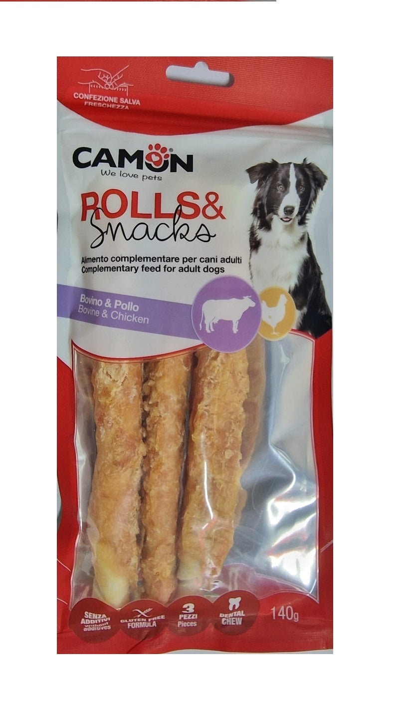 CAMON Rawhide Rolls, rolice s piletinom i govedinom, poslastica za pse, 140g