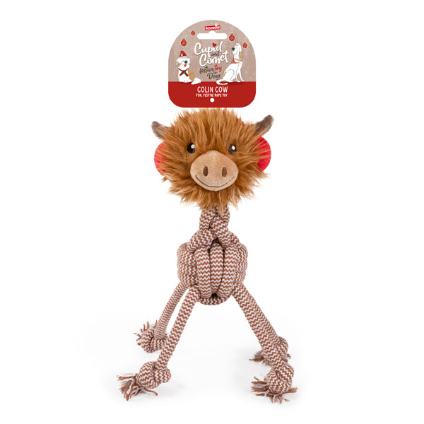 CUPID&COMET Igračka za pse Krava s konopom, zvučna, 12x36cm