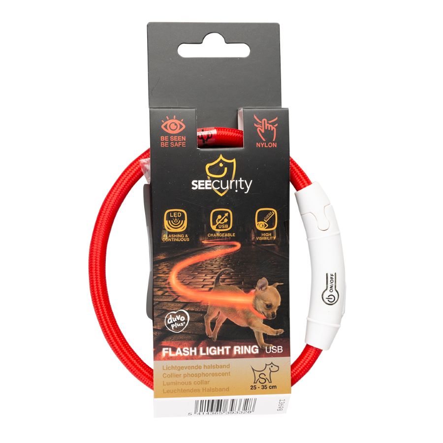 DUVO+ SEEcurity Reflektirajuća ogrlica za pse USB, najlon, 35-65cm, crvena