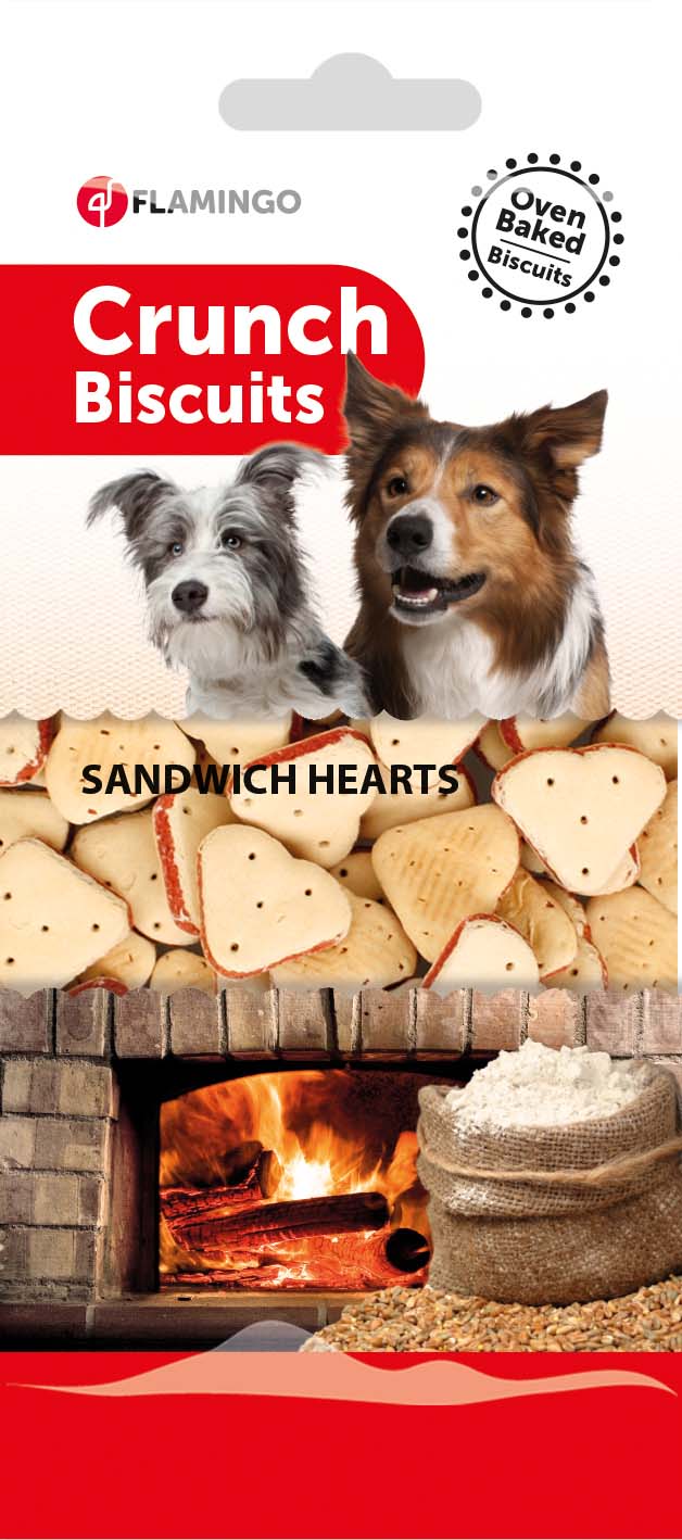 FLAMINGO Hrskavi biskviti za pse Sandwich Hearts, 500g