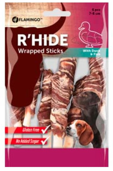 FLAMINGO R`Hide Wrapped Sticks, žvakalica pačetina s bakalarom, 6kom, 85g