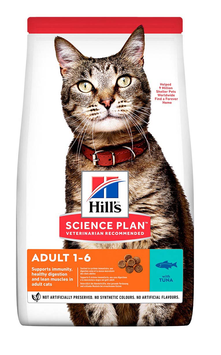 Hill's™ SCIENCE PLAN™ ADULT CAT sa TUNOM (tuna 5%) je potpuna hrana za odrasle mačke starosti od 1 do 6 godina.