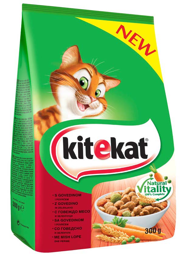 KITEKAT Briketi Govedin/Povrće, potpuna hrana za odrasle mačke.