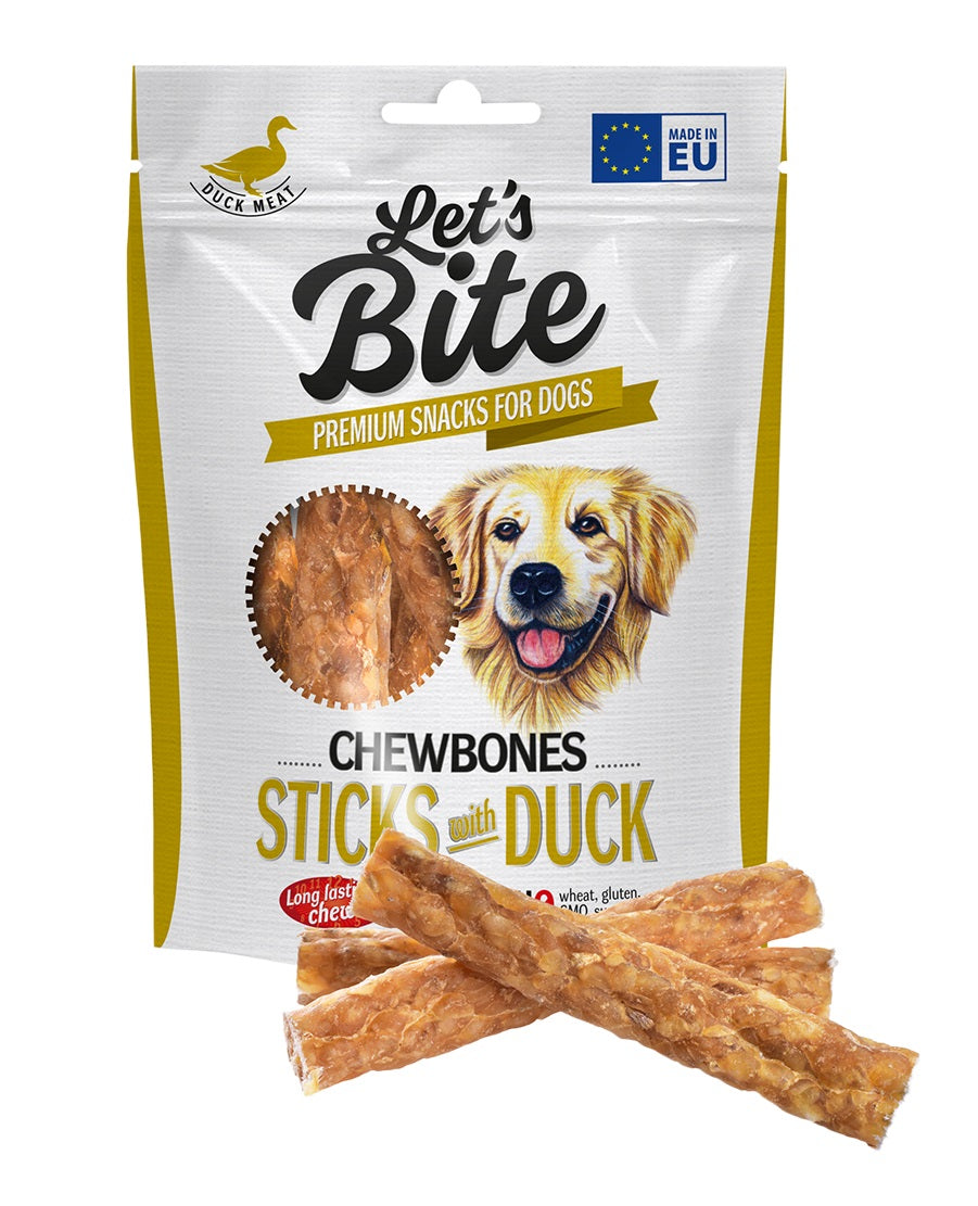 LET's Bite Chewbones, poslastica za pse, štapići s pačetinom, 120g