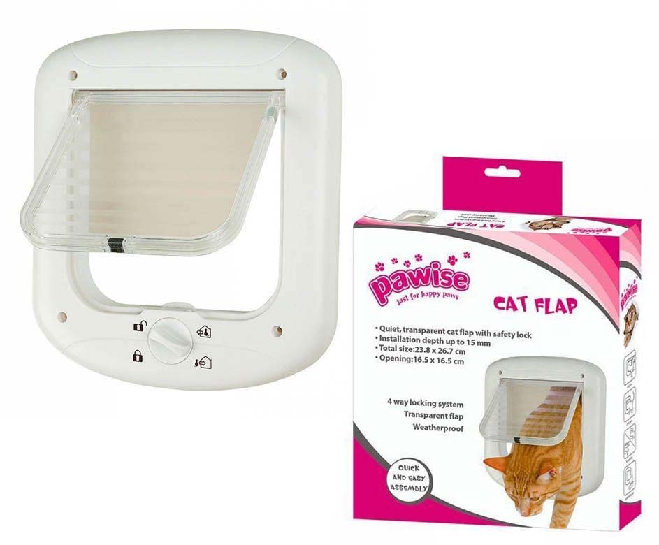 Pawise Cat Flap su transparentna i vrlo tiha pomična vrata za mačke, sa sigurnosnom bravicom za kontrolu ulaza i izlaza.