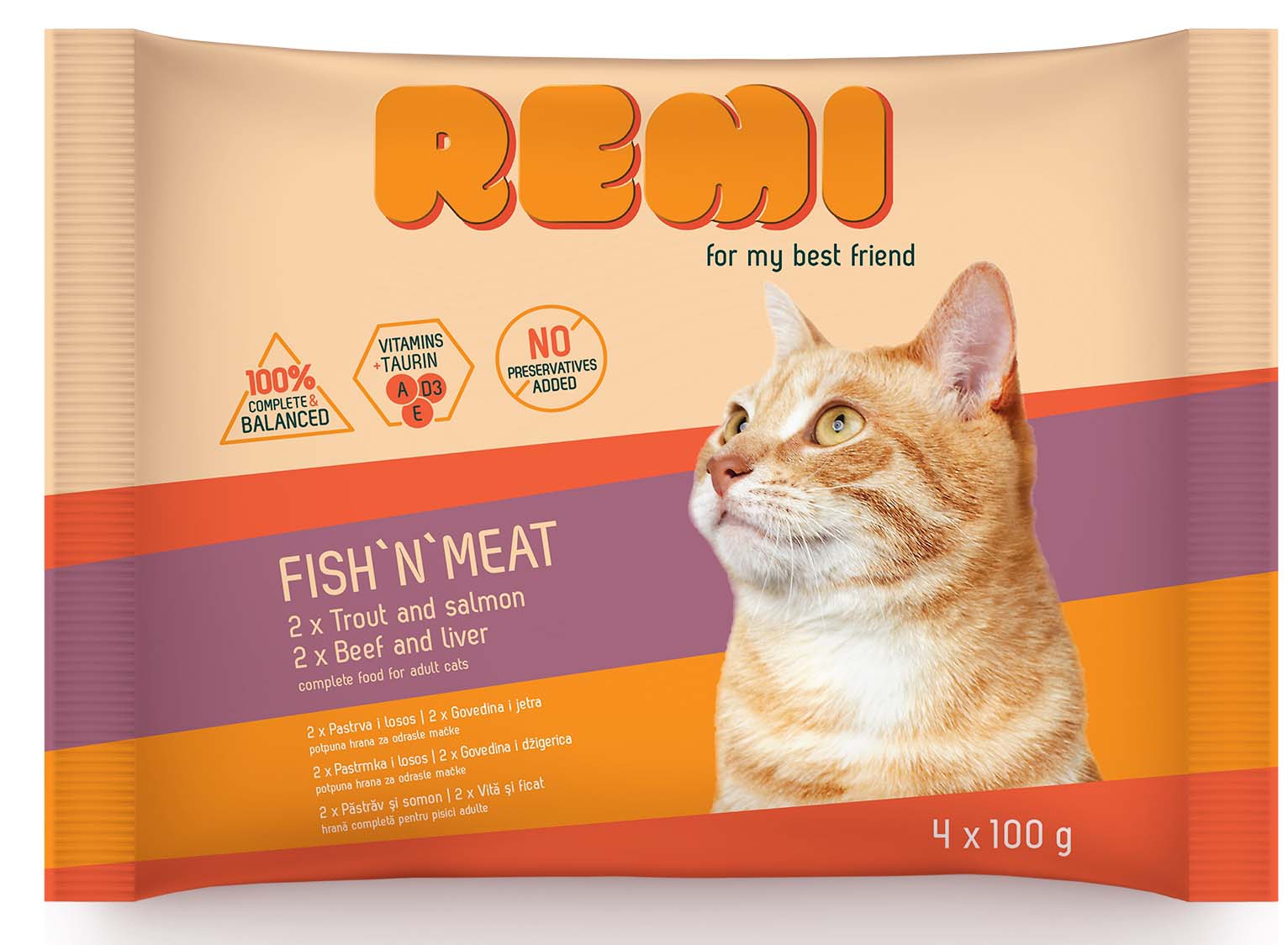 REMI Cat Multipak (2x s govedinom i jetrom, 2x s pastrvom i lososom), 4x100 g