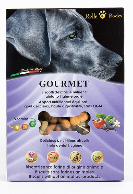 ROCKY GOURMET biskviti za pse, s okusom vanilije/rajčice/špinata/rogača, 300g