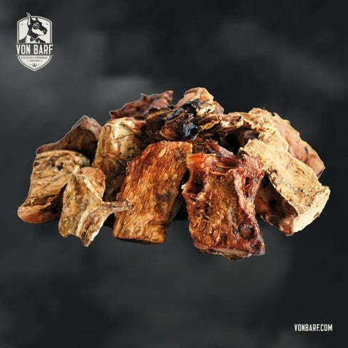 Von BARF delicije pažljivo su osušeni, odabrani komadi mesa i iznutrica. Suše se samo na strujanju vrućeg zraka bez ikakvih dodataka (konzervansi, boje, pojačivači okusa i sl.)