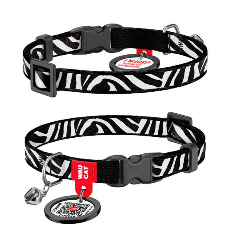 WAUCAT Ogrlica za mačke Zebra, Smart QR, XS, 10mm/20-30cm