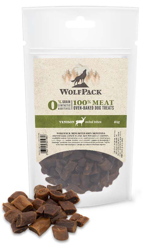 WOLFPACK Mini bites, 100% srnetina, pečeno meso, bez žitarica, 85g